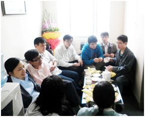 Các nam đồng nghiệp cùng chúc mừng và chia vui cùng chị em nhân dịp 8-3 |